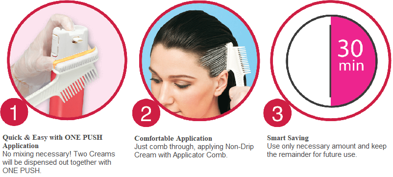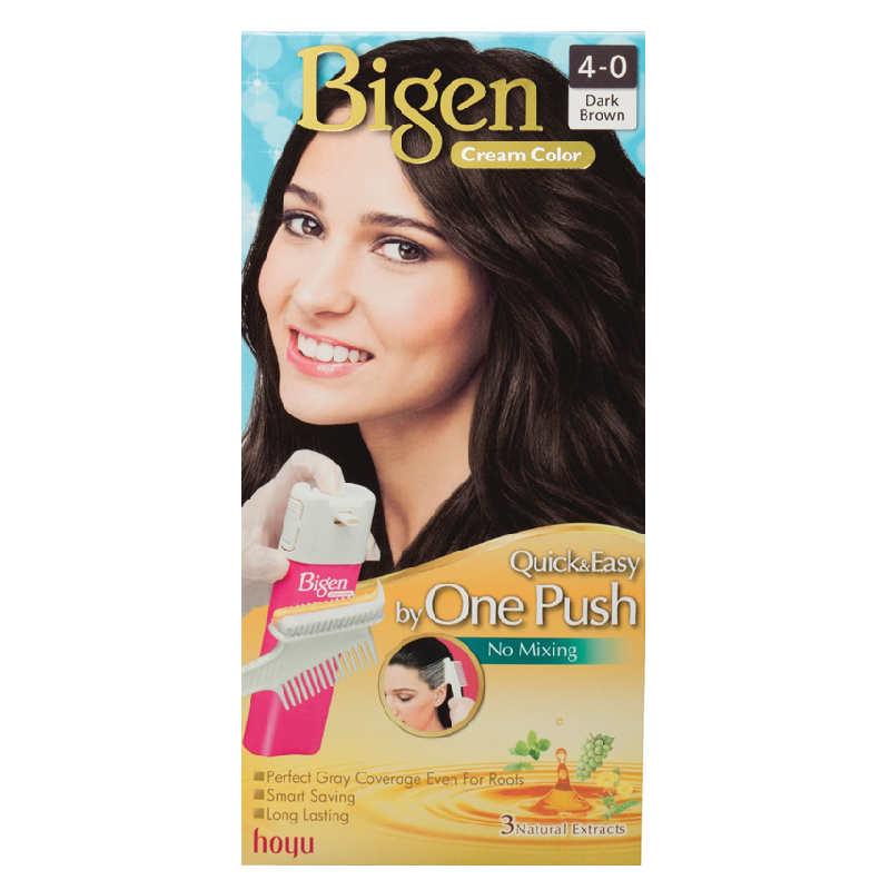 Bigen Cream Color is designed especially for women who want to color hair easily and quickly. It takes just a press of a finger to dispense the two cream simultaneously onto the Special Comb Brush. Your preparation is now simpler because there is no need to premix the two creams anymore. The remainder cream can be stored, so that it is very economical. Bigen is a Quick, Easy and Convenient way to color your hair and cover your gray as you wish.